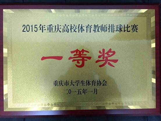 2015年1月5--7日,重庆市高校体育教师排球比赛在合川区重庆师范大学涉外商贸学院体育馆落下帷幕。德赢体育教师在比赛场上勇于拼搏,传承和发扬了德赢女排精神,表现优异,连续二年获得第一名的好成绩,赛出了工商人的水平,赛出了工商人的风格,锻炼了工商人的意志,树立了工商人的信心。
