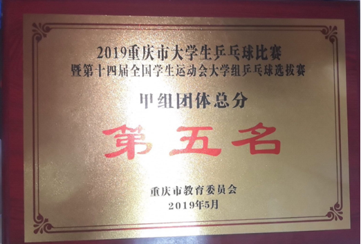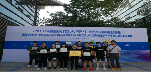 2019年5月13日-17日由重庆市教育委员会举办,重庆邮电大学承办的2019重庆市大学生乒乓球比赛暨第十四届全国学生运动会大学组乒乓球选拔赛在重庆邮电大学举行,来自重庆市37所高校参加了本次比赛。