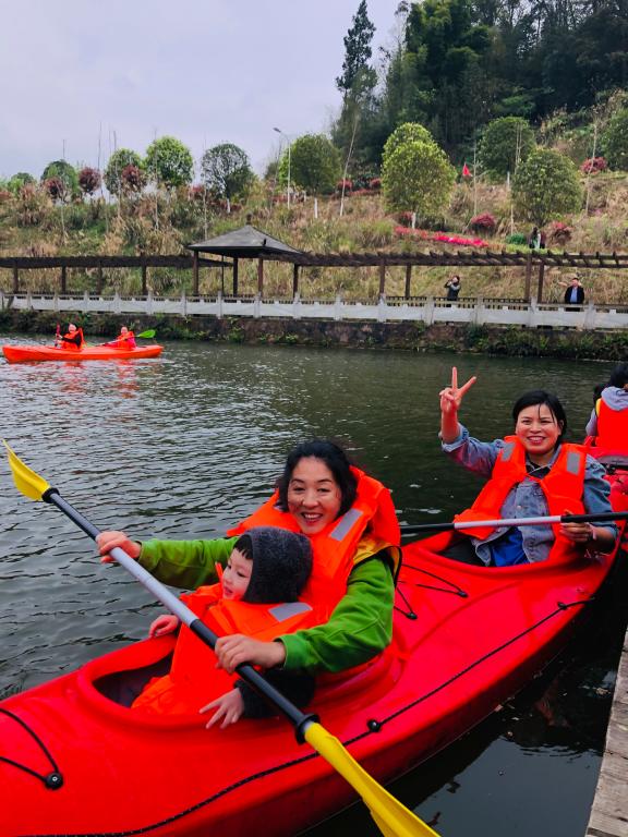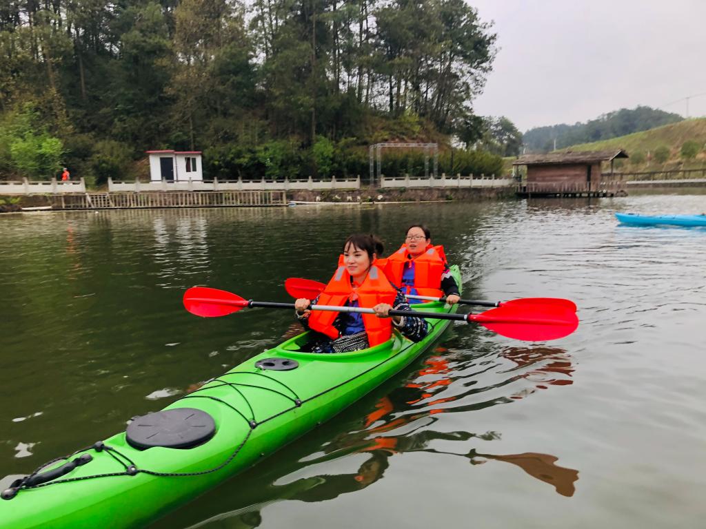 CS战场过后是极具趣味性、挑战性的皮划艇运动,春日的阳光下,老师们身穿救生衣坐进彩色皮划艇,在水中自在游弋,在绿水青山之间感受生态环境的优美和竞速运动的快乐。