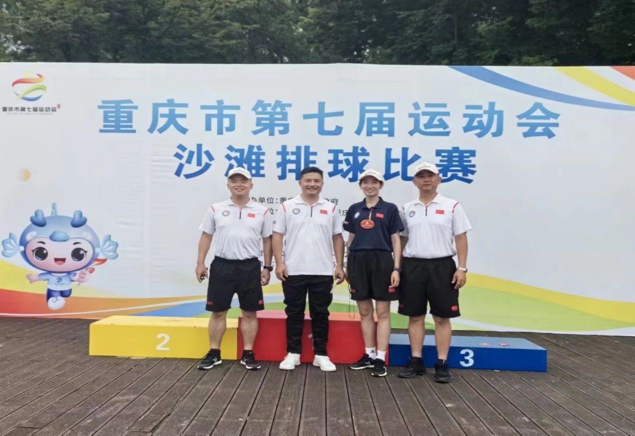 陈华杰老师(右一)担任第七届市运会沙滩排球裁判员