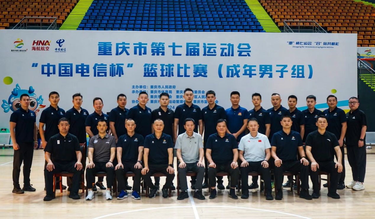 蒋愉老师(一排右二)担任七运会篮球项目裁判长