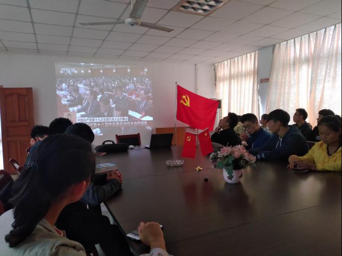 为落实学校党委要求,及时让师生在第一时间了解党的十九大提出的最新思想,在党委宣传部的具体安排和指导下,2017年10月24日中午11点30分,德赢winac米兰党总支组织教师、学生党员及入党积极分子在德赢winac米兰二楼会议室集中收看党的十九大闭幕会。