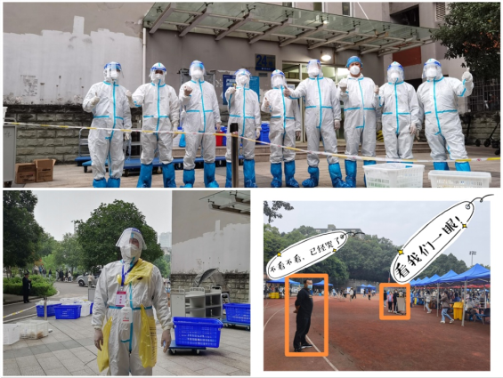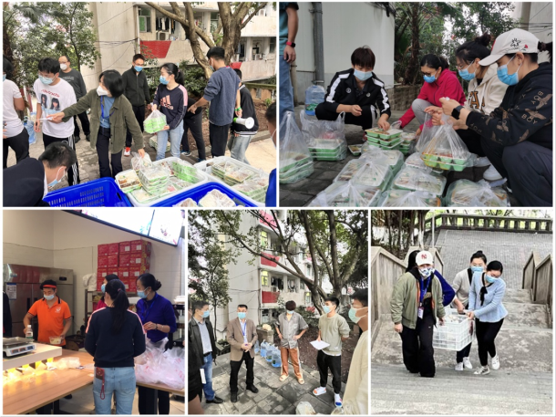 齐心协力,快乐抗疫。进入校园后,志愿者积极服从学校统筹安排,主动争取抗疫任务,积极投入抗疫行动,在学校临时党支部、核酸检测、食品监督、分餐送餐、物资发放等各个岗位上都能看到他们忙碌的身影。范文杰院长深入北区24栋,协助医务工作者为阳性密接学生检测核酸和体温,检测结束,又赶紧给同学们送餐。每次送餐,他都不忘用双手在头顶比心鼓励他们团结抗疫,同时还主动请缨,接受临时任务,用实际行动证明领导干部的责任和担当。