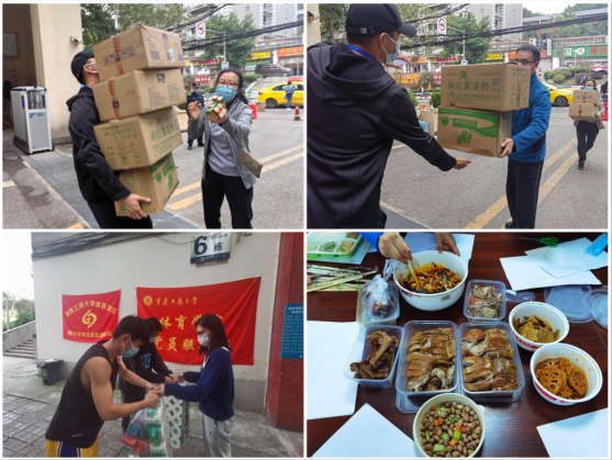 全院教职工密切关注校园疫情,他们在学院微信群分享抗疫信息,鼓励志愿行动,广泛传播学院正能量。梁斌、刘芳、杨辉、高清伟、杨丽芳、马雪蓉6名老师和王拥军、陈国柱两位老师的家属挤出时间给志愿者做出香甜可口的饭菜,卤菜、烧鹅、白砍鸡、香肠、瓜子、花生、火腿肠、水果……只要他们想到的、知道的,认为是好吃的,每天都会变着花样及时送到校园来,给志愿者们改善伙食,他们说得最多的就是“你们在一线很辛苦,我们在后方也必须出点力”,他们送来的不仅是美味食物,还有浓浓的关爱之情。