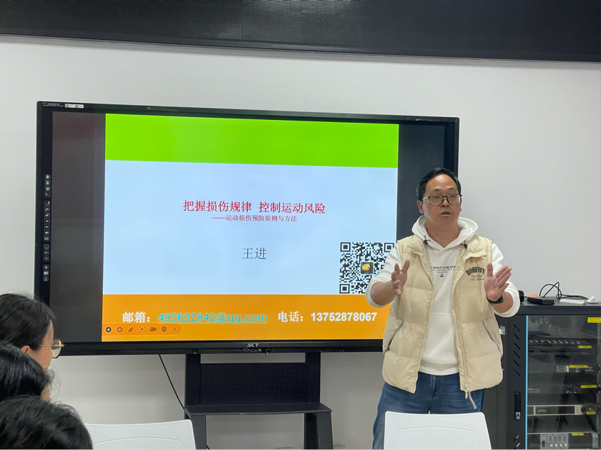 紧接着,王进老师为大家带来了关于“运动损伤预防原则及方法”的说课示范。王老师结合自己丰富的教学经验和实践案例,深入浅出地讲解了运动损伤的预防原则和具体方法。在说课中,王老师重点突出、主次分明,不仅注重教法的传授,还强调了学法的重要性,为新老师的教学起到了很好的启发作用。