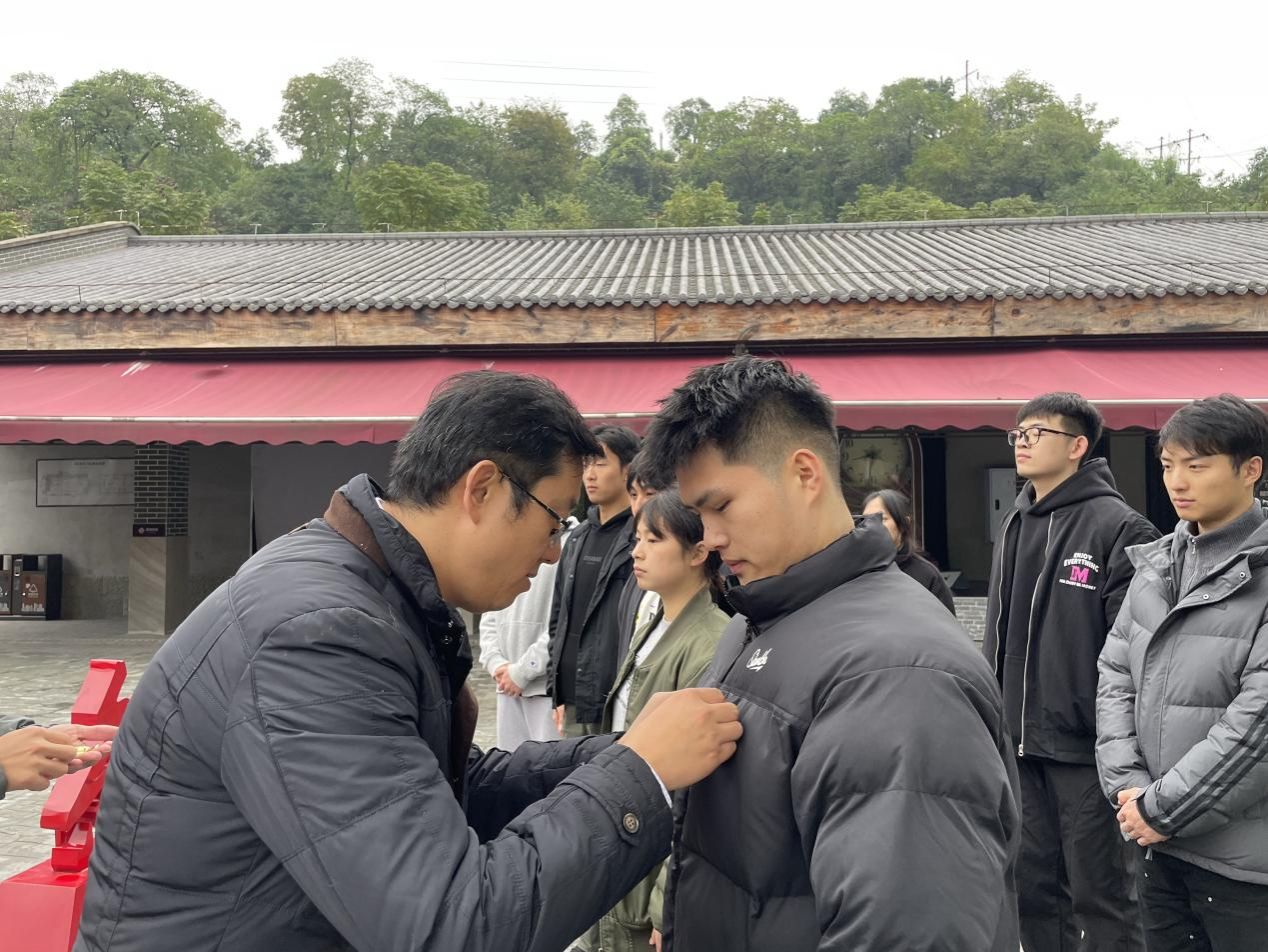 剧目观看结束后,举行新党员入党宣誓仪式。学生党支部书记胡进鸿宣读新党员名单后,新党员李约翰、张家齐、陈毅、代李芳、李玉兵,面向党旗,举起右手,庄严宣誓。而后,党总支副书记郭本玲亲手为新党员同志们佩戴党徽。这枚熠熠生辉的党徽,不仅是荣誉的象征,更是一份沉甸甸的责任与使命的托付。随后,新党员代李芳同志发言,衷心感谢党组织的培养与信任,表示将倍加珍惜党员身份,以更高标准严格要求自己,努力践行入党誓词,为党的事业不懈奋斗。最后,全体党员同志重温入党誓词,誓言简短却字字千钧,彰显出对党的无限忠诚以及为共产主义伟大事业拼搏、奋斗终身的坚定决心。