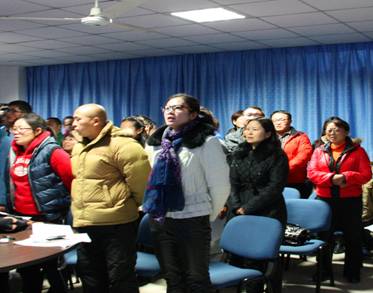 图1 教职工代表齐唱国歌