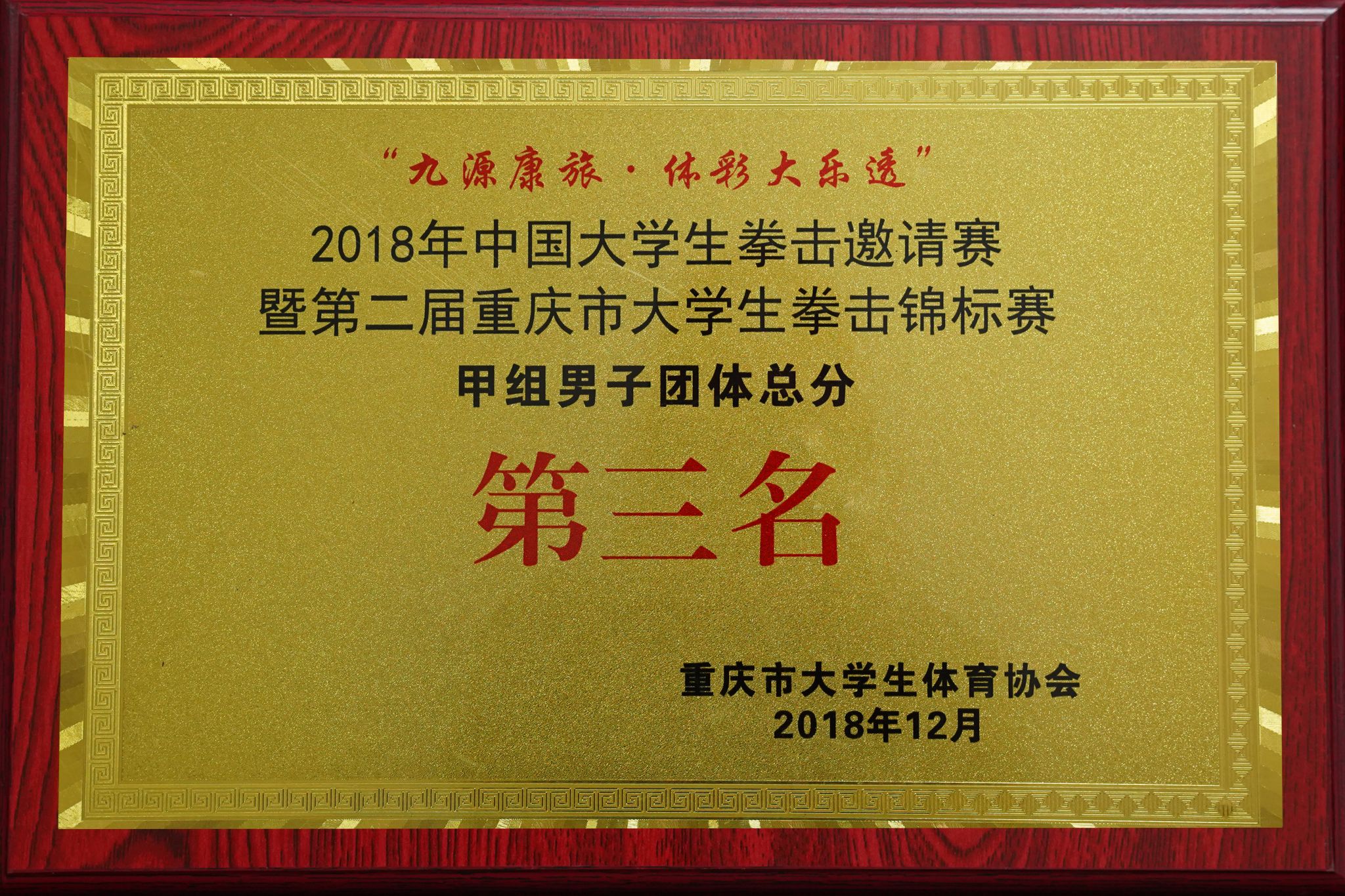 荣获2018年中国大学生拳击邀请赛甲组男子团体总分第三名