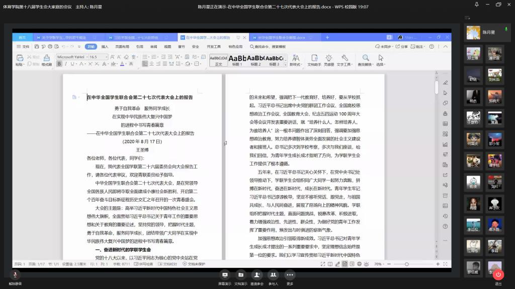 为加强学生组织对青年学生的政治引领,团结引导广大青年学生听党话、跟党走,在矢志奋斗中谱写新时代的青春之歌,德赢winac米兰分团委学生会于9月29日通过企业微信平台召开线上主题学习会,学院学生会全体成员参加了此次会议。