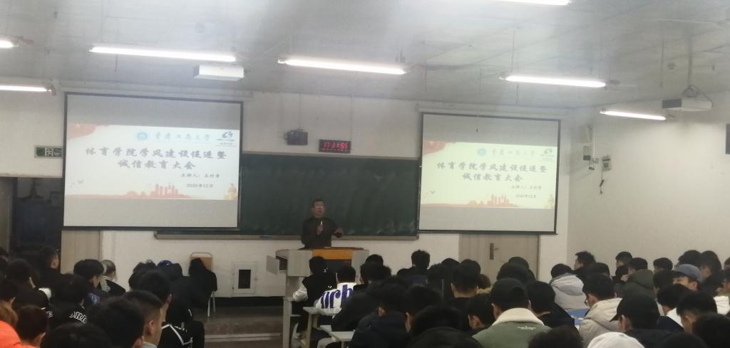 2020年12月2日下午,德赢winac米兰学风建设促进暨诚信教育大会,在慧智楼209教室召开,德赢winac米兰党总支书记王竹青、德赢winac米兰分团委副书记傅杨,以及德赢winac米兰2018级、2019级、2020级体育教育专业学生参加了本次会议。