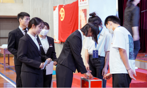 随后,全体学生讨论通过了大会选举办法及总监票人、监票人名单、总计票人、计票人名单。经到会代表充分酝酿讨论,采用无记名投票方式和差额选举办法,选举傅杨、尹潇、刘兴林、周月桂、徐桂香、张羽、周嘉欣等7名同志为共青团德赢winac米兰新一届委员会委员;王俊杰、张译、罗亚林3名同学为德赢winac米兰学生会新一届主席团成员。