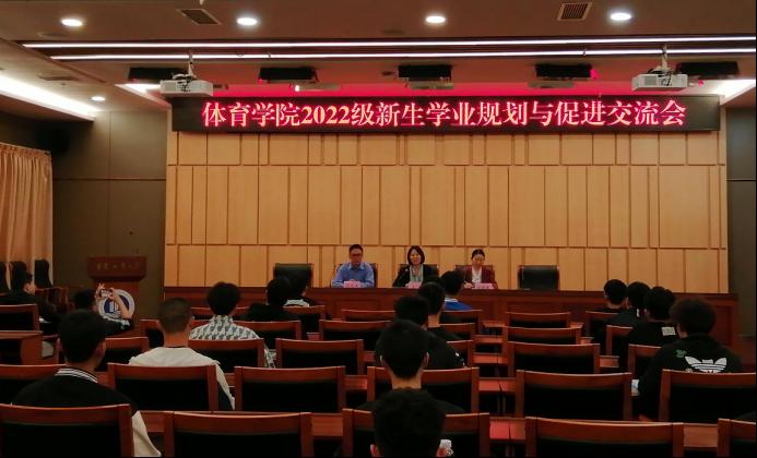 10月6日中午,德赢winac米兰在校图书馆第一会议室召开了 “2022级新生学业规划与促进交流”的主题会议。出席本次会议的有党总支书记王静、院长范文杰、党总支副书记张薇薇、副院长梁斌、体育系副主任蒋愉、新生辅导员刘有斌和全体新生,会议由学院党总支副书记张薇薇主持。