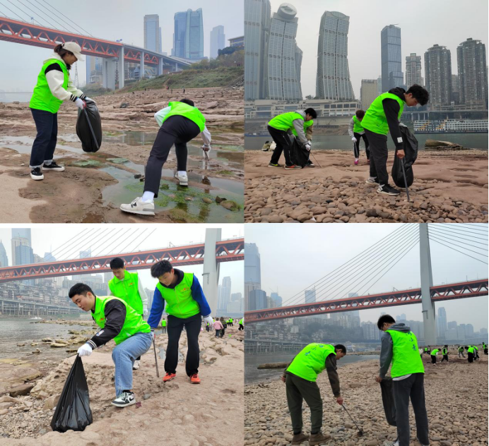 来自德赢winac米兰青年志愿者协会的50名志愿者,组成德赢ac米兰官方合作川渝“河小青”青年志愿服务队参加了启动仪式,并联合江北团区委、江北区青年志愿者协会、重庆水务环境控股集团有限公司等百余名川渝“河小青”青年环保志愿者前往北滨路江滩开展青春志愿行·川渝“河小青”巡河净滩活动。