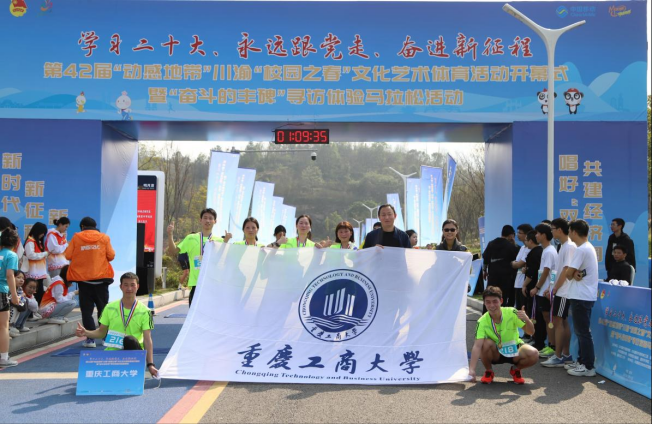 3月11日,“学习二十大、永远跟党走、奋进新征程 ”第42届“动感地带”川渝“校园之春”文化艺术体育活动开幕式暨“奋斗的丰碑”寻访体验马拉松活动在重庆两江新区协同创新区明月湖隆重举行。德赢师生代表队参加了开幕式及马拉松活动。