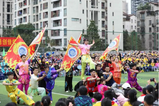 3月28日,江南小学教育集团“阳光体育 超越自我”2023年体育节隆重开幕,德赢武术代表队受邀参加开幕式演出。本次演出由校团委负责老师王微带队,武术队总教练黄龙老师精心编排,来自德赢winac米兰的17名武术队员们尽心排练,他们精神饱满,意气风发,为江南小学全体师生带来了一场中华武术的视觉盛宴!