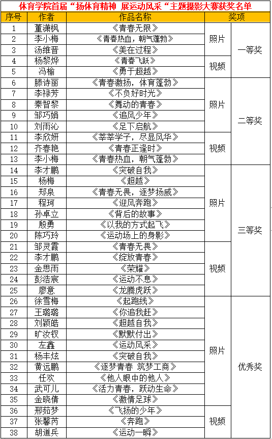 运动也许瞬间与我们擦肩而过,当速度成为一种美丽的时候,需要一种捕捉,因为美丽稍纵即逝,一声快门,光与影的碰撞,让我们一起留住精彩美好瞬间。本次摄影大赛经过活动前期的策划、线上线下宣传,共收到参赛作品72份,通过承协办单位对参赛作品的收集及匿名评分,最终评选出38名获奖同学。