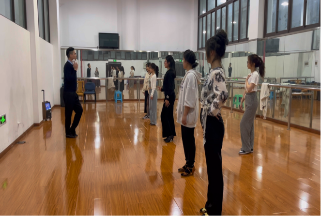 4月28日,在南岸校区舞蹈室举办了体育舞蹈协会2023春季基本功大赛,本次比赛由体育舞蹈协会主办。本次活动旨在让同学们了解想要成为优秀的舞者,必须要有扎实的基本功。本次活动分为“指导老师带领训练”和“优秀学员评比”两个环节。