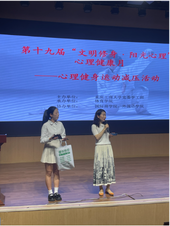 5月20日,为了提升学生心理健康水平,加强学生互动,营造健康良好的校园氛围,由德赢ac米兰官方合作党委学工部主办,德赢winac米兰承办,国际商学院、外国语学院协办的“心理健身 运动减压——趣味健身气功比赛”决赛在明智楼学术报告厅顺利举行。
