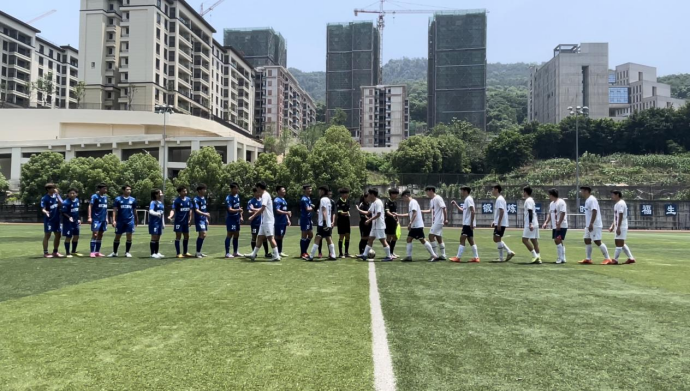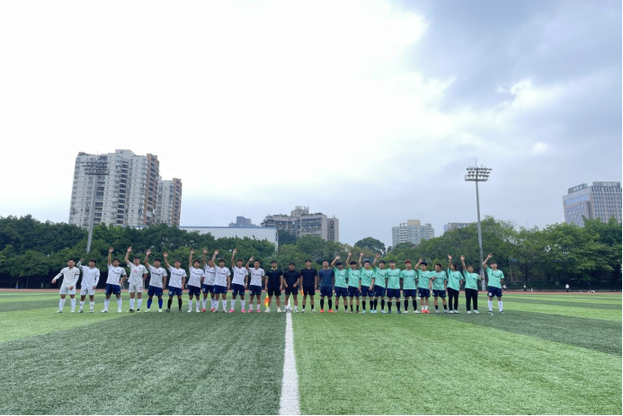 (图为2020级和2021级足球队赛前握手仪式照片)