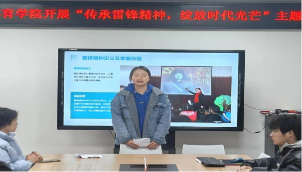 活动伊始,由2022级体育教育二班冉妍同学带领大家学习雷锋精神,并组织同学起来发表自己对雷锋精神的体会和如何弘扬雷锋精神的分享,活动现场十分活跃。通过了解雷锋的事迹,让在场的同学们深受启发和感动。青协成员张坤铖、黄贵娟两名同学通过交流发言的方式,结合自己的生活实践,分享了如何在生活和学习中融入雷锋精神,培养个人良好品质的方法。畅谈自己对雷锋精神的理解和认识,以及在日常生活中如何践行雷锋精神的具体举措,以及弘扬雷锋精神的重要性。明白雷锋精神是中华民族宝贵的精神财富,我们要将其传承和发扬光大。