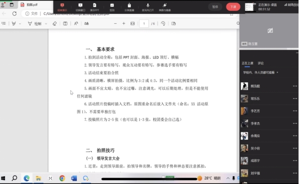 培训会上,陈玉慧从新闻稿的基本要求、格式、撰写等方面展开讲解,详细介绍了摄影技巧、宣传海报制作以及国家级投稿技巧与方法,并通过优秀新闻稿及摄影作品案例,带领参会学生干部了解新闻写作和摄影技巧的注意事项,强调稿件和照片内容应简洁明快,没有杂乱无关的信息,要体现新闻活动主体内容,凸显明确主题,具有代表性。在互动环节,她鼓励学生干部们多看,多思考,多积累,多写稿,把握新闻写作的内在规律,写出高质量的新闻作品。