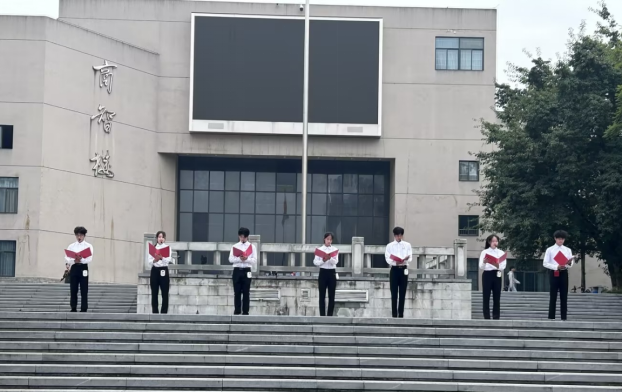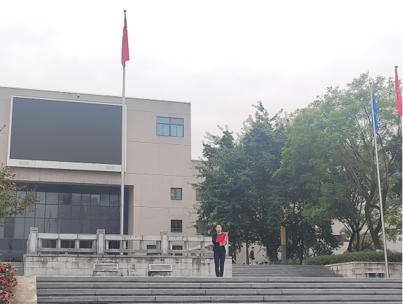 升旗仪式结束后,本科生国家奖学金获得者、2021级体育教育专业冉茜代表学生在国旗下演讲。她表示,作为新时代的青年学子,要做理想远大、信念坚定的青年模范;要做刻苦学习、锐意创新的青年模范;要做艰苦奋斗、无私奉献的青年模范,以实际行动践行青春誓言,为祖国的繁荣富强贡献自己的力量。