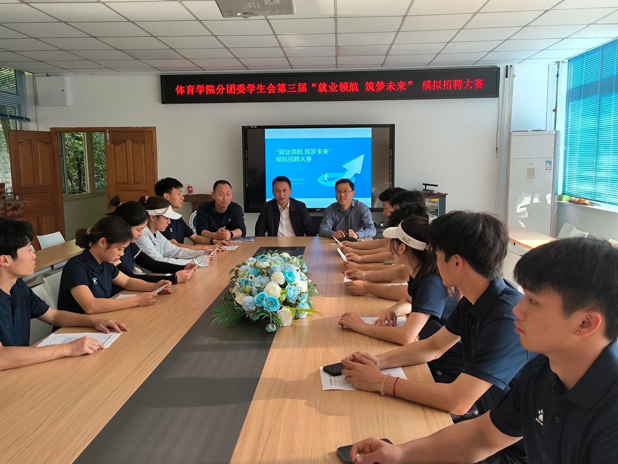 德赢winac米兰3月26日,在学院二楼会议室成功举办了第三届“筑梦启航 职面未来”大学生模拟招聘大赛。本次比赛邀请了德赢winac米兰德赢winac米兰党委书记黄谦、副书记郭本玲、德赢winac米兰副院长梁斌、辅导员胡进鸿担任评委,大赛吸引了全院80余名学生参与,通过“简历自我展示—情景模拟—实战答辩”全链条竞技,为学子打造沉浸式求职体验平台。