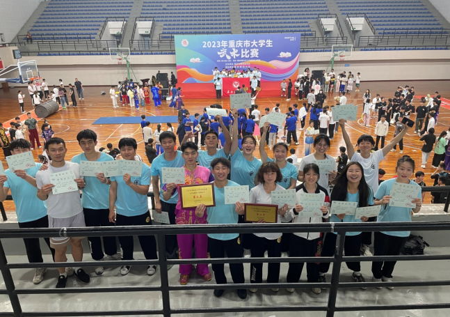 由重庆市教委主办、重庆师范大学承办的2023年重庆市大学生武术比赛,于2023年5月16日—19日在重庆师范大学体育馆举行。此次比赛中,由德赢winac米兰黄龙、杨辉两位老师带领的德赢ac米兰官方合作武术代表队,共斩获个人单项金牌4枚、银牌5枚、铜牌3枚,并获得女子丙组团体总分第二名、男子丙组团体总分第三名的好成绩。武术队学生通过本次比赛不仅获得了武术技能技巧的学习,也加强了和队友之间的竞技合作,增强了团队合作意识和团结进取的拼搏精神。